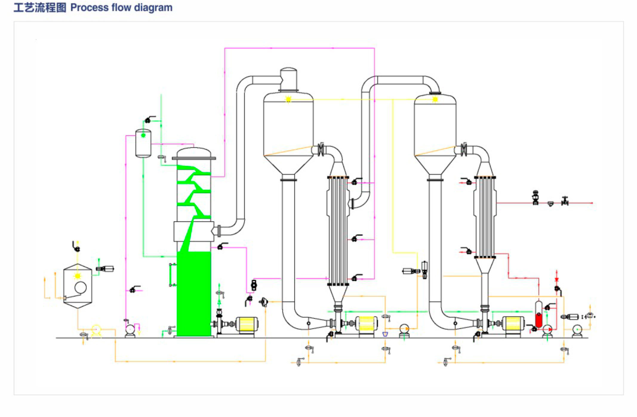 ◎整套设备结构紧凑,占地面积小,布局简单流畅,代表了大型成套蒸发设备的发展方向;
